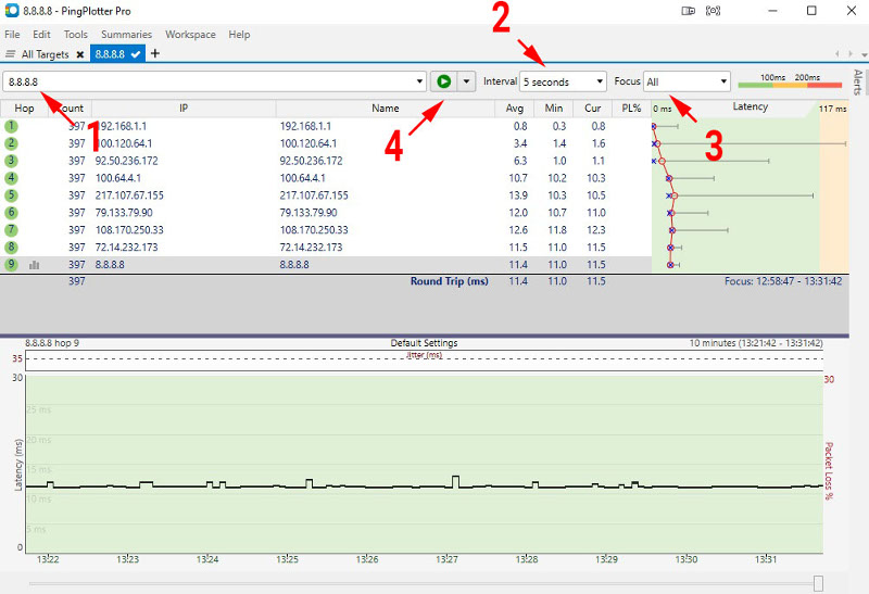 Когда пользователь часто сталкивается с проблемами разрыва соединения или при передаче данных теряются пакеты информации, поможет тестирование канала веб-связи с помощью «ПингПлоттера». Приложение определит слабые узлы, а чтобы программа исправно работала, следует выполнить такой алгоритм: