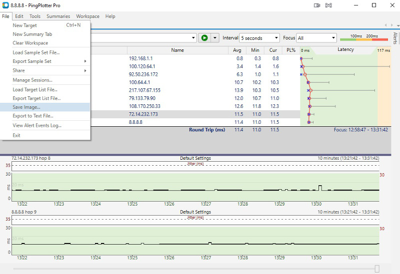 PingPlotter — это компьютерная утилита для поиска и устранения неисправностей IP-сетей. Удобная программа вмещает основные команды пошагового осуществления маршрута Ping/Traceroute посредством UDP-пакетов/TCP/ICMP. Итоги диагностики выводятся в виде графика. Данные можно экспортировать в формате диаграммы или текста. Free-версия программы для ПК действует неограниченный период времени, а сразу после установки предоставляется 2-недельное пользование уровнем Professional. Скачать последнюю версию PingPlotter на русском языке можно на нашем сайте.